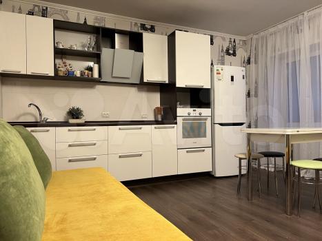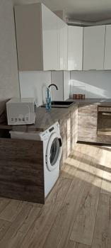 1 ком.квартира. В наличии кухонный гарнитур, плита,вытяжка,барная стойка,2 шт барных стульчика,2 встроенных шкафа, диван, холодильник! Квартира очень уютная в чистом виде! Сдам в хорошие руки!