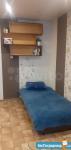 В комнате есть только диван и письменный стол. Обои в комнате поклеены недавно, поэтому не розовые, а светлые (смотреть фото с диваном). Так же на балконе есть комод, который при необходимости можно занести в комнату. Имеется новая гардеробная, а кроме того, встроенный шкаф(в проеме между коридором и ванной), в который так же можно разместить вещи.