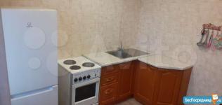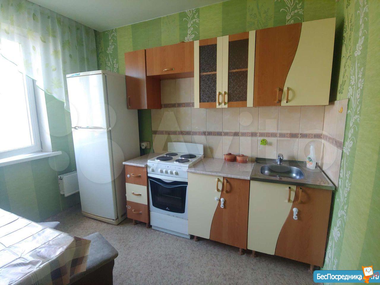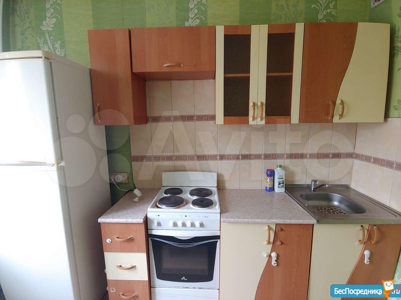 В квартире есть вся необходимая мебель как в комнате, так и на кухне. Из техники — холодильник и стиральная машина.