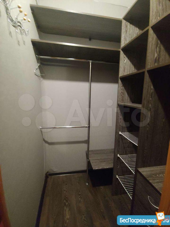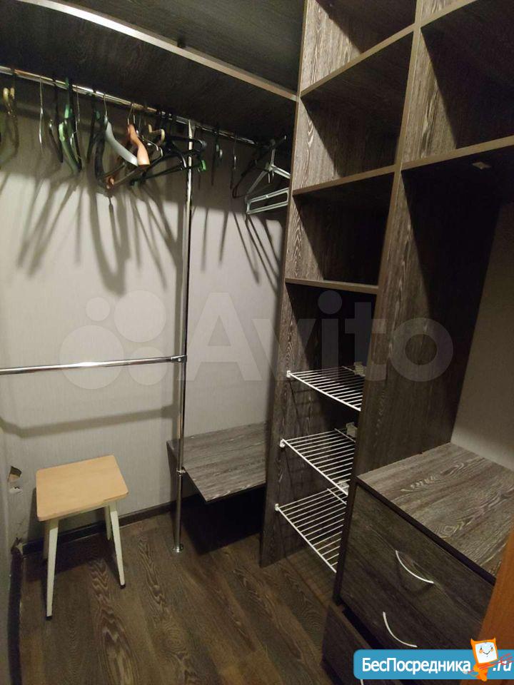В комнате диван, письменный стол, комод. Имеется гардеробная, а кроме того, встроенный шкаф(в проеме между коридором и ванной), в который так же можно разместить вещи.
