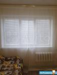 В комнате: диван(не складывается), диван-кровать, стол-книжка, большой угловой шкаф с полками, полки, жалюзи, шторы. В гостинке две двери.