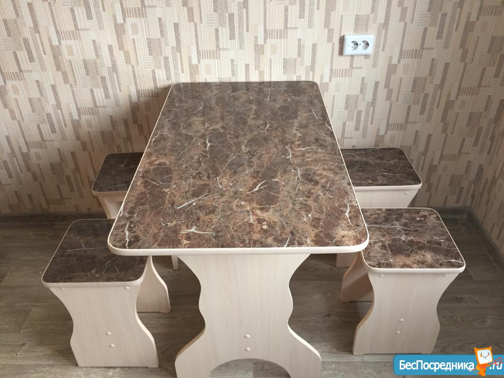 Кухонный гарнитур, плитка, стол, стулья, стиральная машина, диван, шкаф-купе, стеллаж.