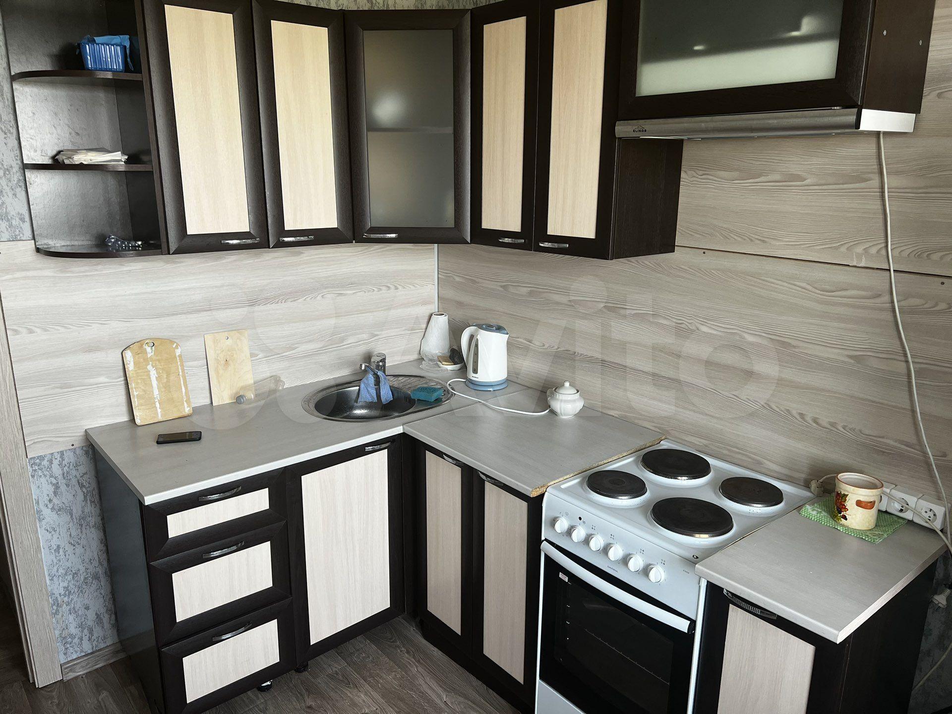 Так же присутствует бытовая техника: холодильник, плита, микроволновка, чайник.