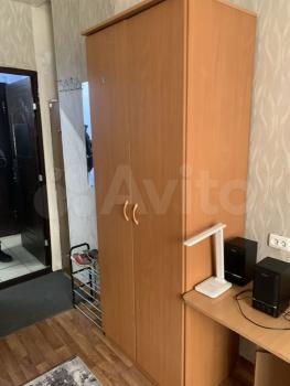 В комнате большой трестворчатый плательный шкаф, диван-книжка, столы, холодильник. Окно пластиковое, дверь железная.