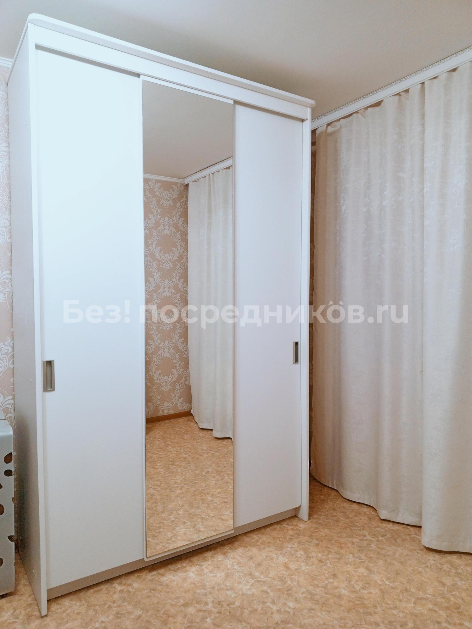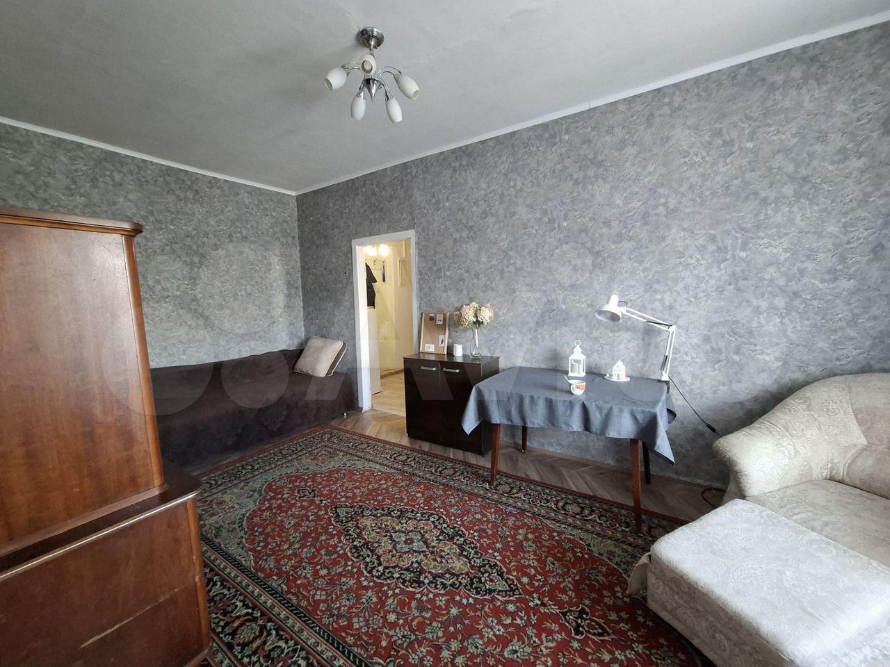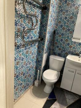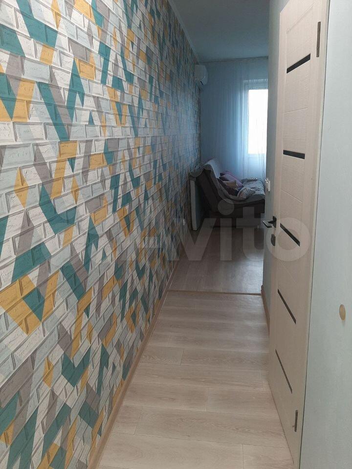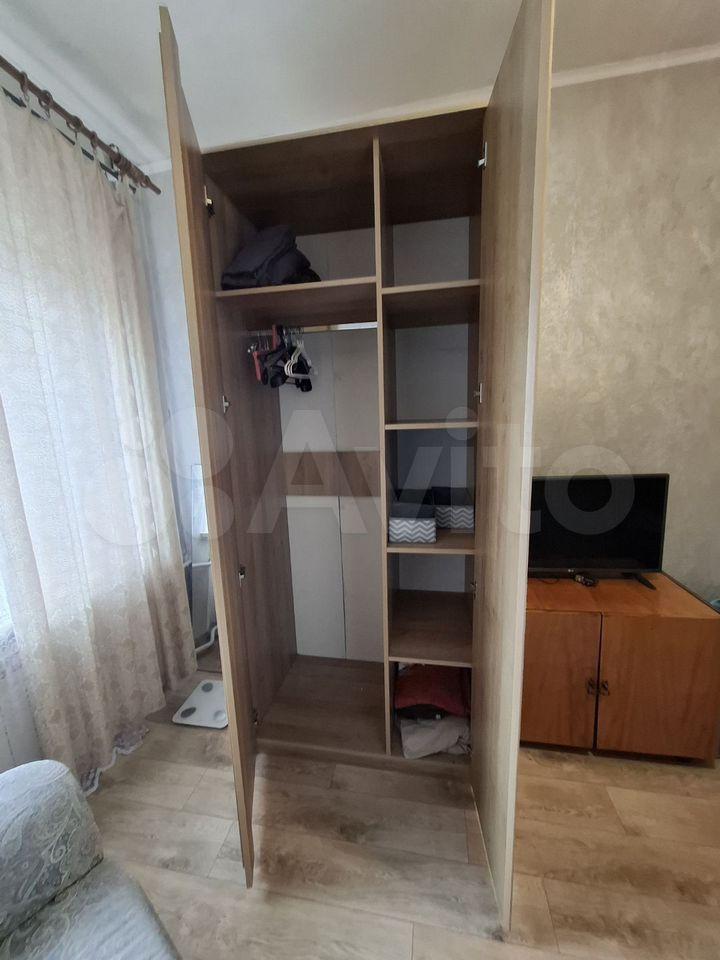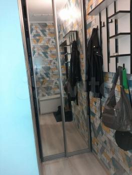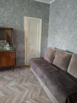 В квартире выполнен косметический ремонт. В комнате установлен вместительный шкаф-купе и диван. Санузел раздельный, оформлен плиткой.