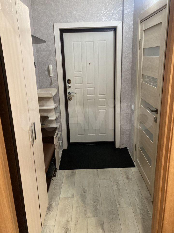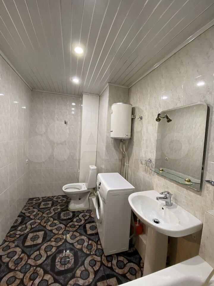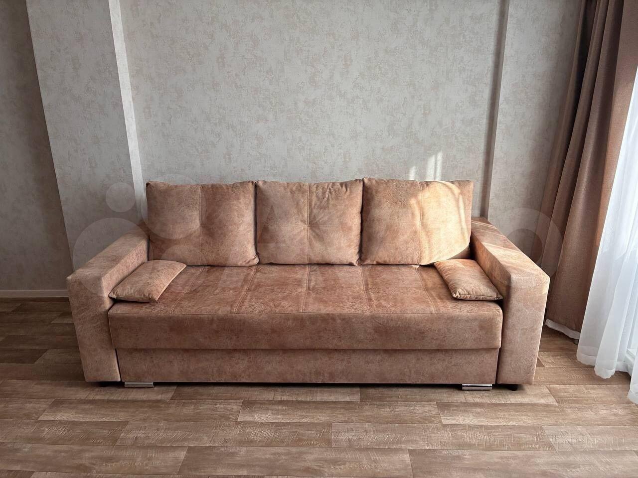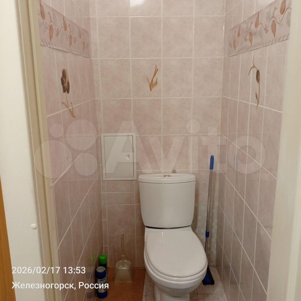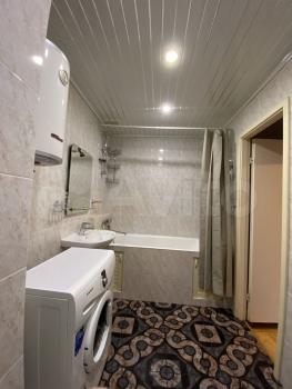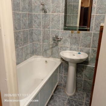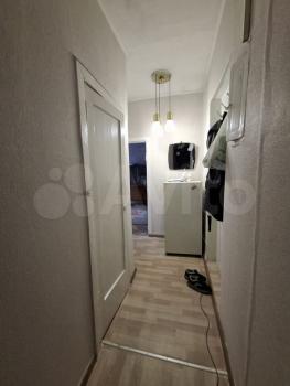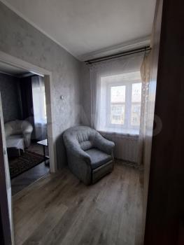 В квартире выполнен косметический ремонт. В комнате установлен вместительный шкаф-купе и диван. Санузел раздельный, оформлен плиткой.