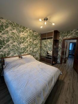 В квартире сделан современный ремонт. Меблирована и оборудована(двуспальная кровать, диван, телевизор, кухонный гарнитур, холодильник, свч печь, эл.плита, шкаф для одежды, стиральная машина). Сдаётся на длительный срок, без животных!