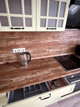 Новая мебель и кухонный гарнитур. Вы будете первыми, кто оценит свежесть дивана, чистоту шкафов и идеальную столешницу на кухне. На кухне уже есть всё необходимое для готовки.