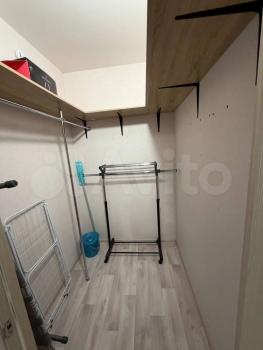 Квартира оборудована отдельной гардеробной комнатой. В гостиной установлен удобный диван, в спальне стоит двуспальная кровать, а детская комната свободна от мебели.