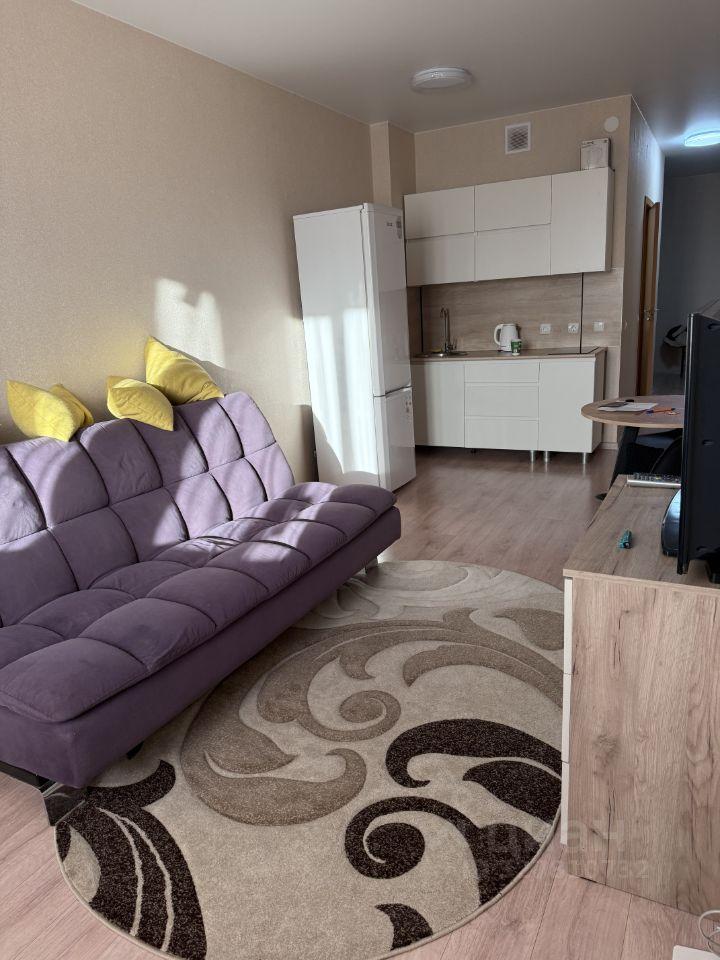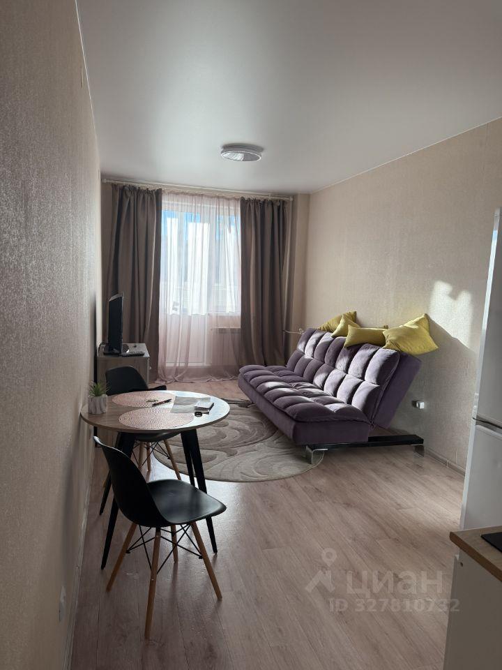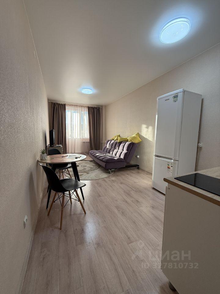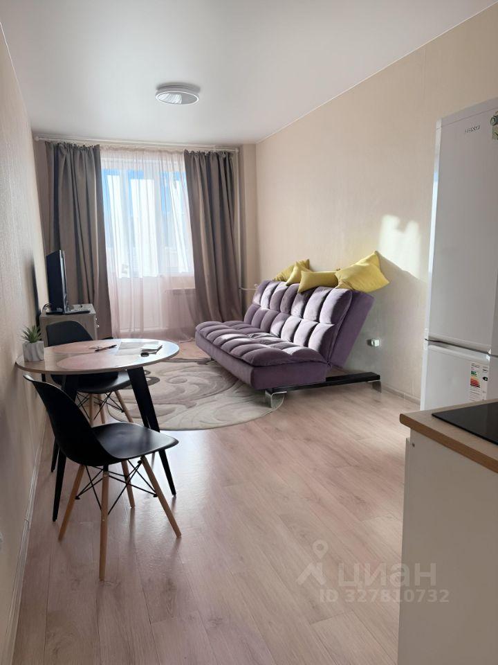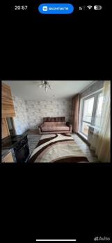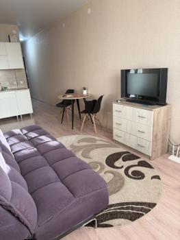 В квартире выполнен косметический ремонт. В кухонной зоне гарнитур, холодильник, стол. Вся мебель есть на фото. Санузел совмещен, что удобно для студийного типа жилья. Также в квартире есть лоджия, где можно наслаждаться свежим воздухом.