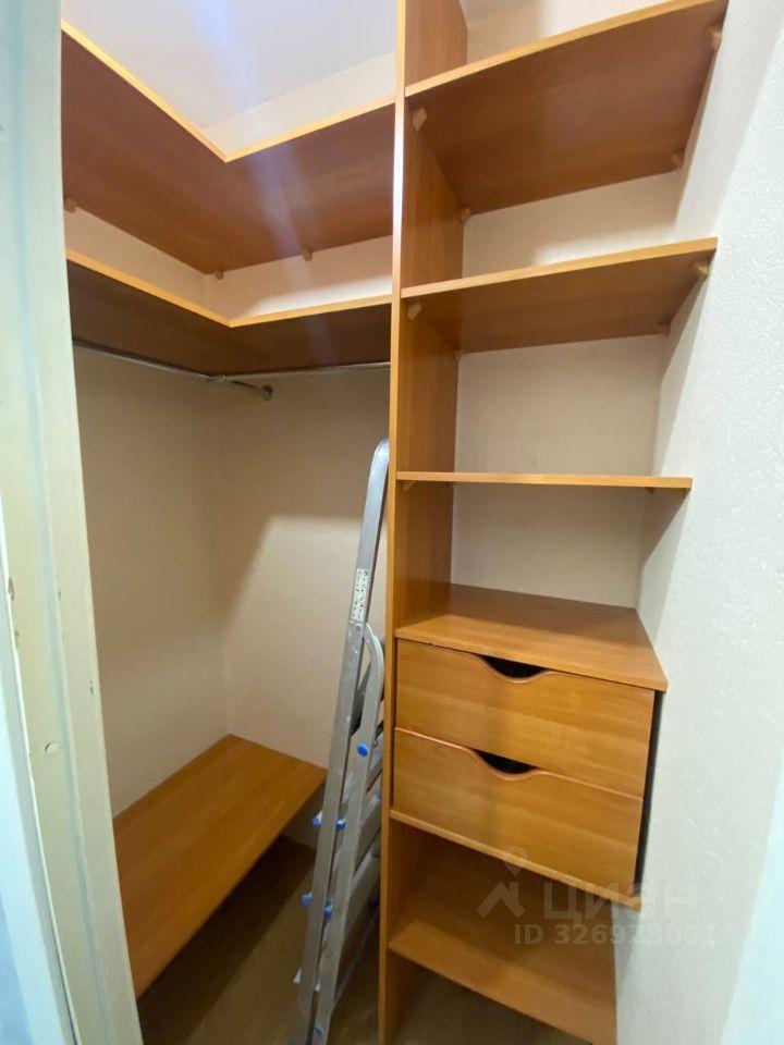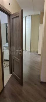 В квартире сделан косметический ремонт. Из мебели есть шкафы, спальных мест нет. На кухне имеется обеденный стол, холодильник, варочная панель, духовой шкаф, микроволновая печь и стиральная машина. В квартире установлен кондиционер.