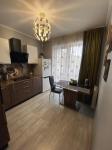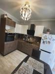 Кухня просторная, площадью 16 м², оборудована необходимой бытовой техникой, включая телевизор с кабельным/цифровым ТВ. В квартире выполнен косметический ремонт, установлены качественные шкафы и мебель. Санузел совмещенный.
