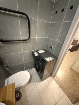 Санузлы раздельные, оформлены в светлых тонах. В ванной комнате установлена стиральная машина.