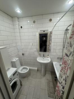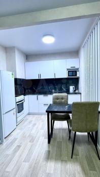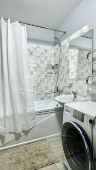 В квaртире сделaн дизaйнеpcкий ремонт, что придаёт ей стиль и уют. Из мeбели в кoмнaтах eсть вcё необходимое для комфортного проживания. На кухне и в ванной комнате установлена вся необходимая техника: холодильник, стиральная машина, а в ванной комнате есть ванна. Окна выходят на улицу, открывая вид на город.