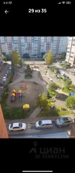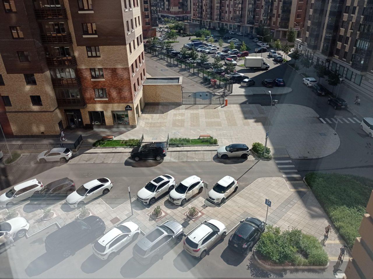 Балкон застекленный, с видом на двор и город. Во дворе предусмотрена подземная парковка и наземная за шлагбаумом.