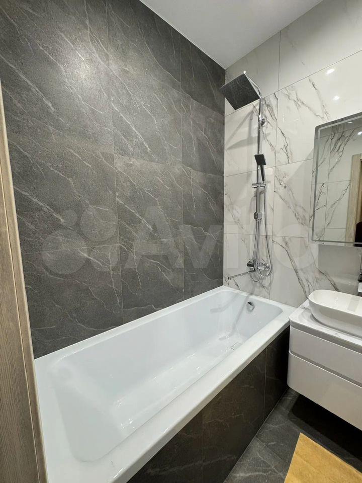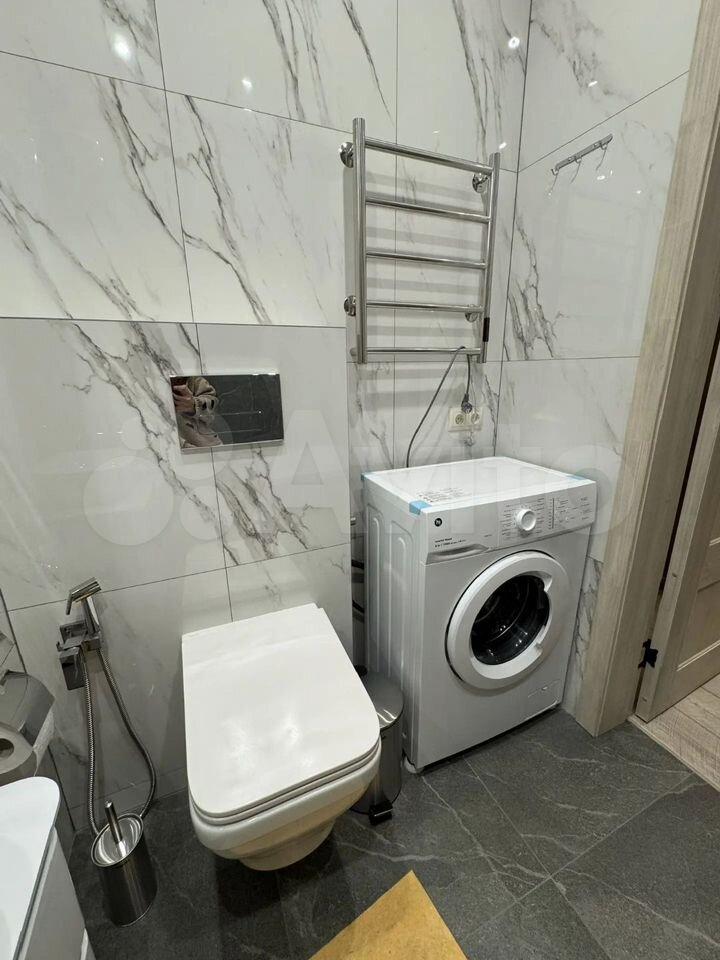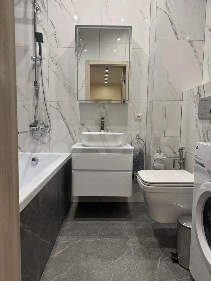 Санузел совмещенный, выполнен в современном стиле с качественной отделкой. В наличии стиральная машина .