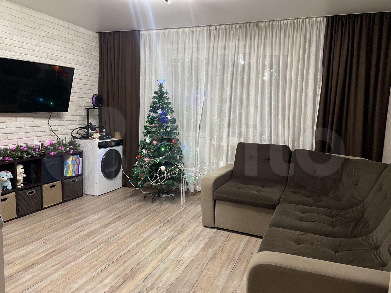 В квартире есть все необходимое: мебель, в комнатах , двуспальная кровать, в зале диван, стенка, встроены шкафы. На кухне гарнитур, стол и стулья, холодильник, стиральная машина. В квартире сделан косметический ремонт, чистая , теплая и светлая.