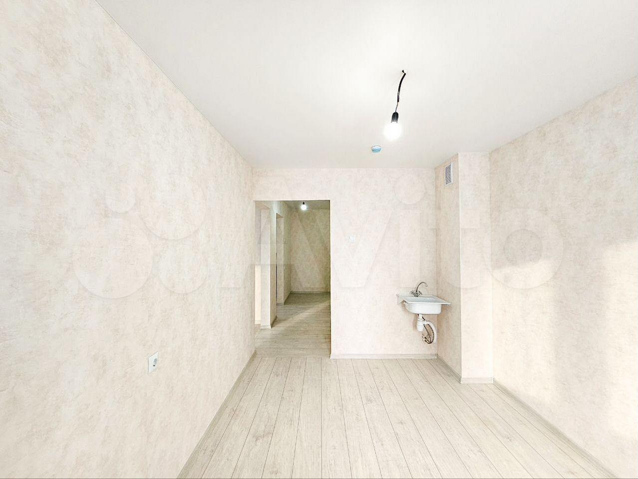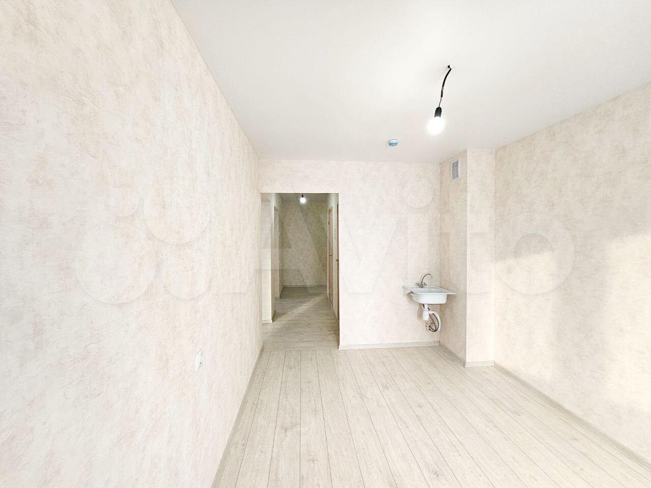 Внутри есть все необходимое для комфортного проживания: холодильник, стиральная машина, телевизор . Из мебели — комод и кровать. Просторная кухня абсолютно новая.