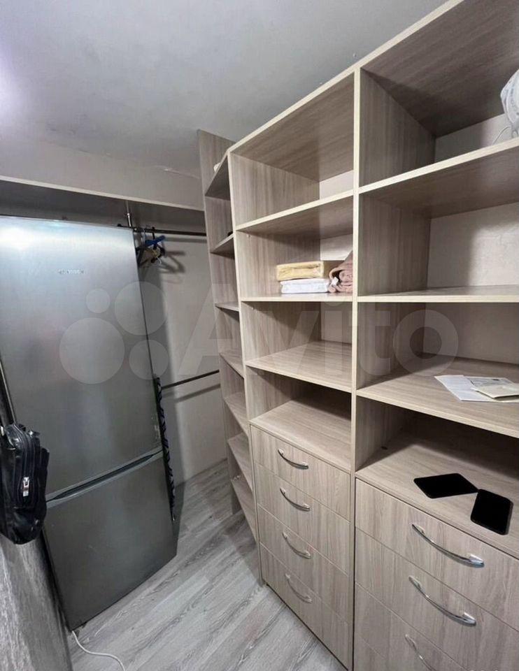 Квартира зонирована на кухню и спальню зону пегородкой,2 двухспальных дивана,кухонный гарнитур, эл.плита с духовкой,кухонный стол+стулья, огромная система хранения для вещей,стиральная машина. Сдам на долгий срок, без животных. Стоимость 25 000 +свет и вода по счетчикам.