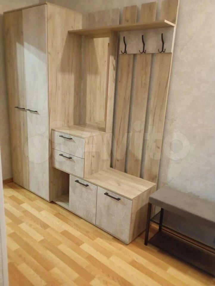 - прихожая с зеркалом, закрытым шкафом и крючками для верхней одежды, полки для хранения вещей, обуви.