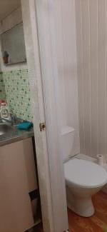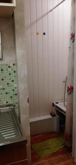 Совмещенный санузел, центральная канализация, туалет ,ванна, новая большая стиральная машина, раковина,на потолке натяжной потолок, отличное современное освещение.
