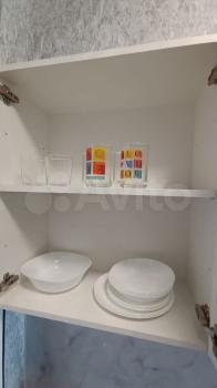 Комната-кухня: кухонный гарнитур, эл.плита, холодильник, микроволновка, чайник; обеденный уголок; вместительная стенка, комод, тумбочки и удобный диван; телевизор и ДВД.
