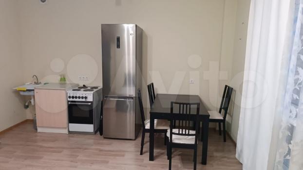 Очень тёплая, уютная, просторная студия. Из мебели: шкаф купе, кровать 2-х спальная, тумба прикроватная, стол, стулья 4 штуки, холодильник, телевизор, плита с духовкой, полочки для обуви 2 штуки, зеркало.