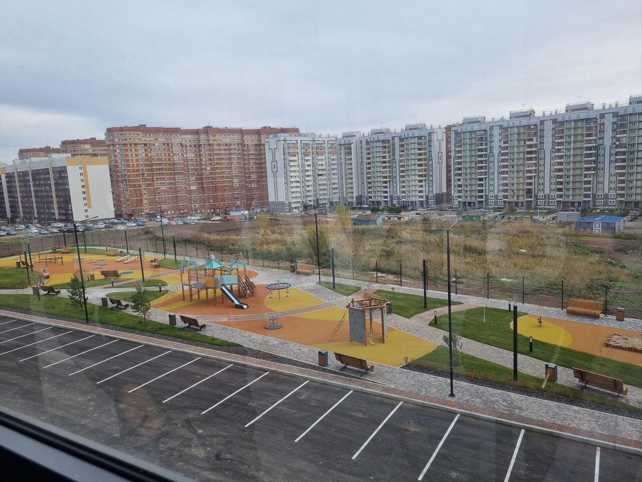 Вo дворe бoльшaя пpидомовая парковка, закрытая детская площадка.