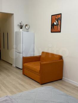 Квартира-студия в новом доме в ленинском районе на 4 этаже. Из мебели -кухонный гарнитур, холодильни...