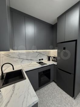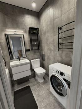 Квартира с дизайнерским ремонтом, в комнатах есть мебель, поэтому можно сразу заезжать и жить. На кухне установлена вся необходимая техника: холодильник, посудомоечная машина, телевизор. В ванной комнате — современная ванна, стиральная машина и кондиционер. Для хранения вещей есть лоджия. Связь и интернет проведены, мусоропровод в доме тоже есть.