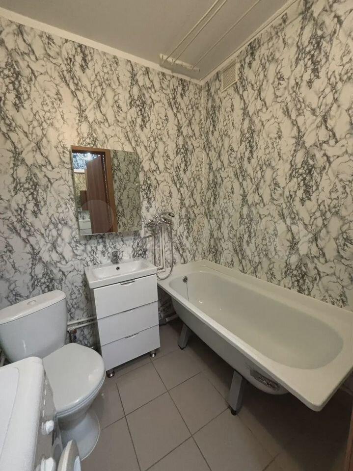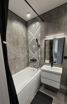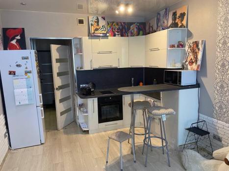 В квартире выполнен свежий евро ремонт. Просторная комната с качественным ламинатом и большими окнами. Кухня площадью 9 м² оборудована современной техникой, включая холодильник и плиту. В ванной комнате совмещенный санузел с ванной и стильной сантехникой.