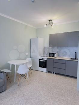Кухня оборудована современной техникой, включая холодильник, плиту и посудомоечную машину. В ванной комнате установлена стиральная машина, бойлер и совмещённый санузел. Вся мебель на фото. Возможна покупка дивана в счёт аренды.