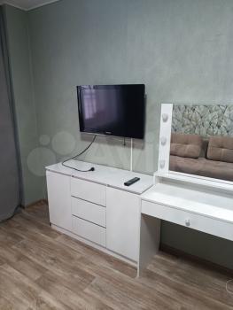 В квaртире есть все необходимое для комфортного проживания: шкафы, спальные места, кухня оборудована современной техникой, включая плиту. Санузел раздельный, выполнен в светлых тонах. Нет стиральной машины и холодильника, дивана в зале нет, только двухярусная детская кровать.