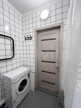 В комнате установлены шкафы и диван, что обеспечивает комфортное проживание. Санузел совмещённый, оснащён современной сантехникой и стиральной машиной.