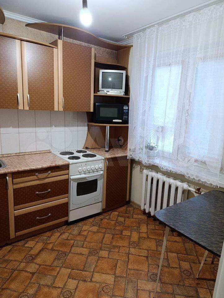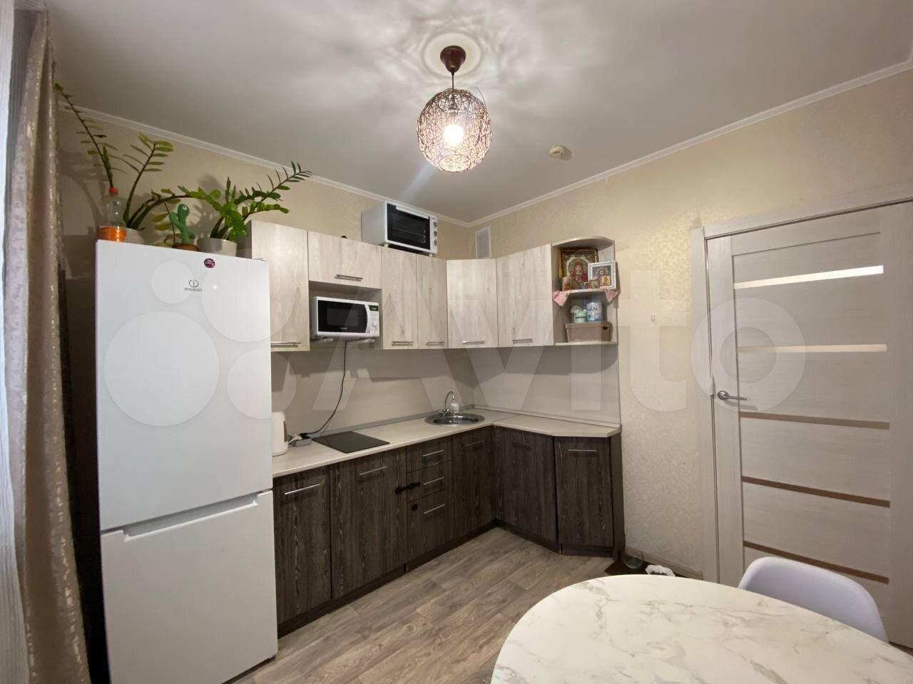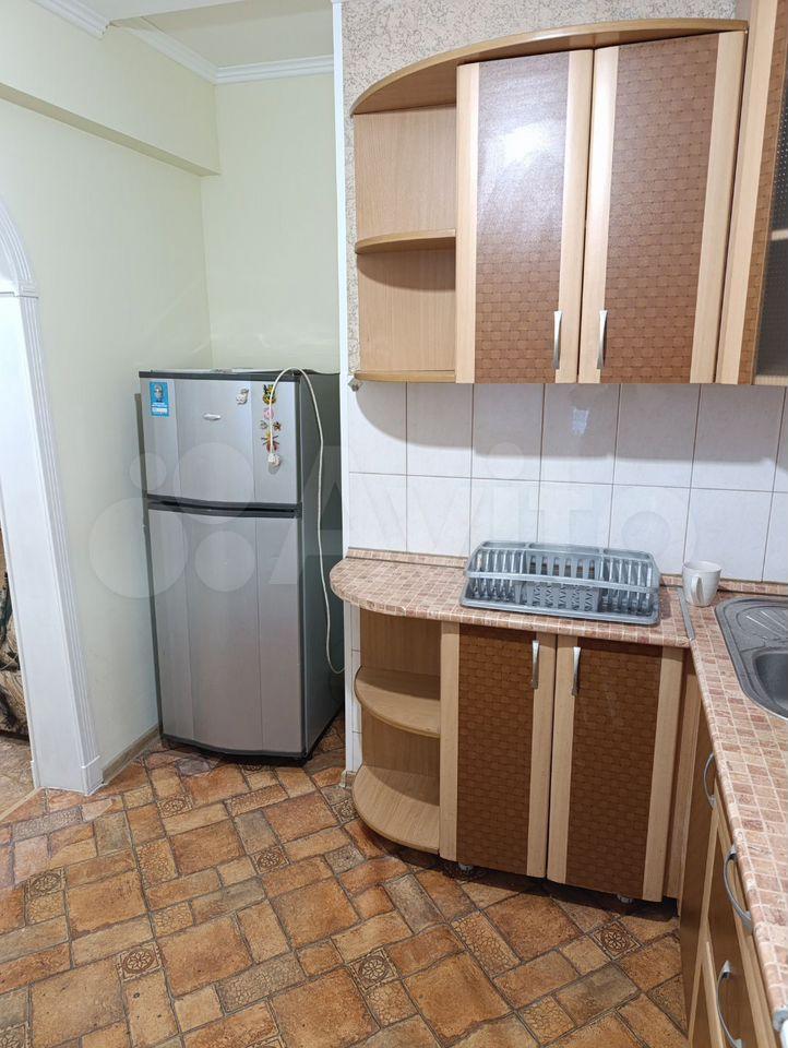 В квартире выполнен косметический ремонт. Просторная кухня оснащена необходимой бытовой техникой, включая холодильник и стиральную машину. В комнате установлен шкаф и диван, что обеспечивает комфортное проживание.