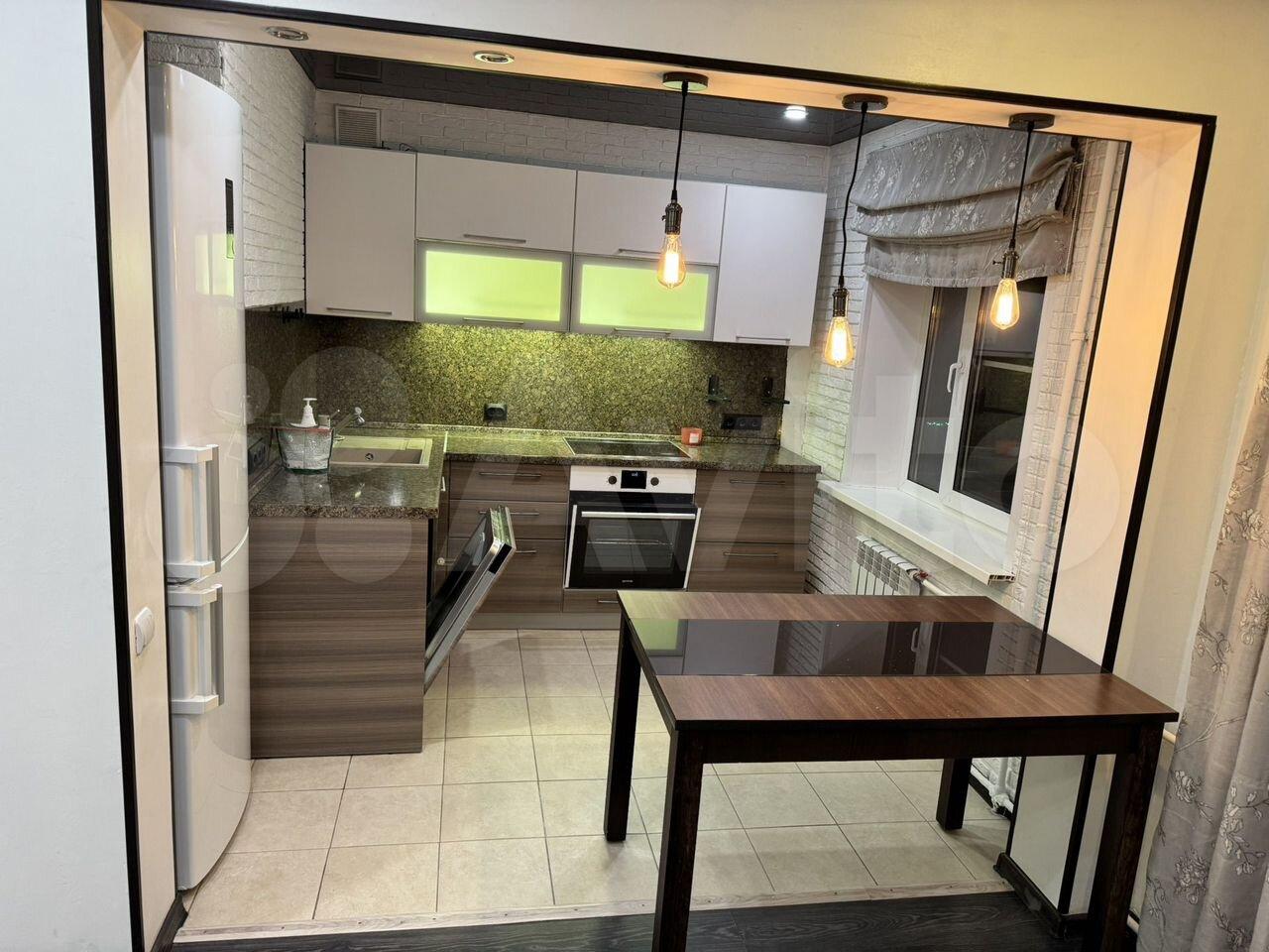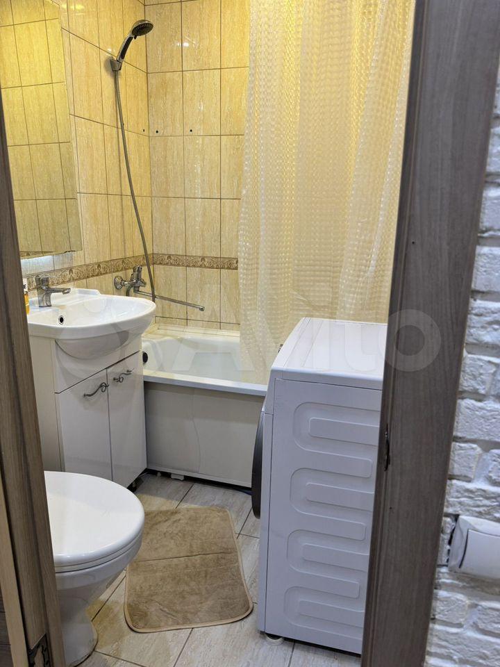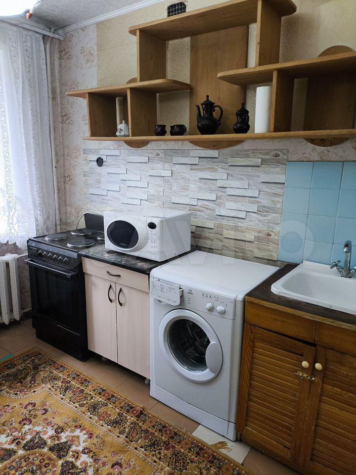 В кухне имеется вся необходимая бытовая техника, включая холодильник и стиральную машину. Из мебели — вместительные шкафы и удобный диван. Ванная комната совмещенная, оснащена всем необходимым.